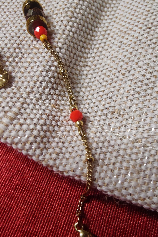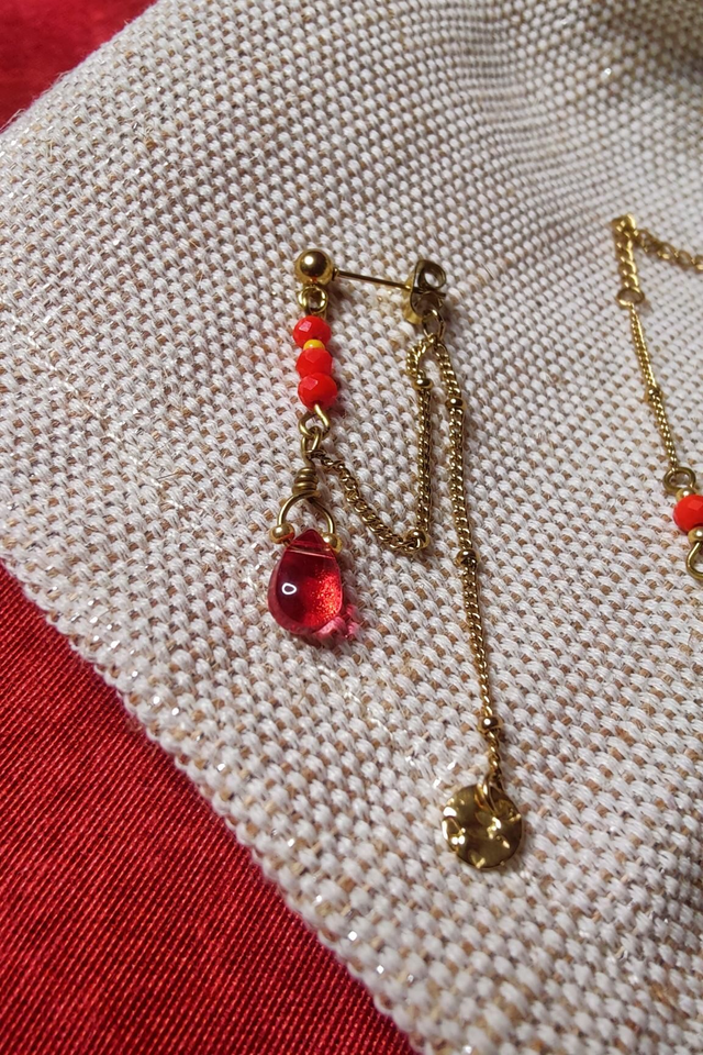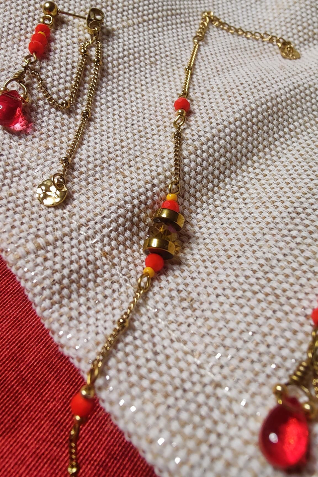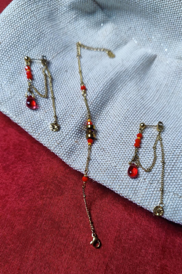 Coffret bijoux - Boucles & bracelet assortis - Corail & Doré