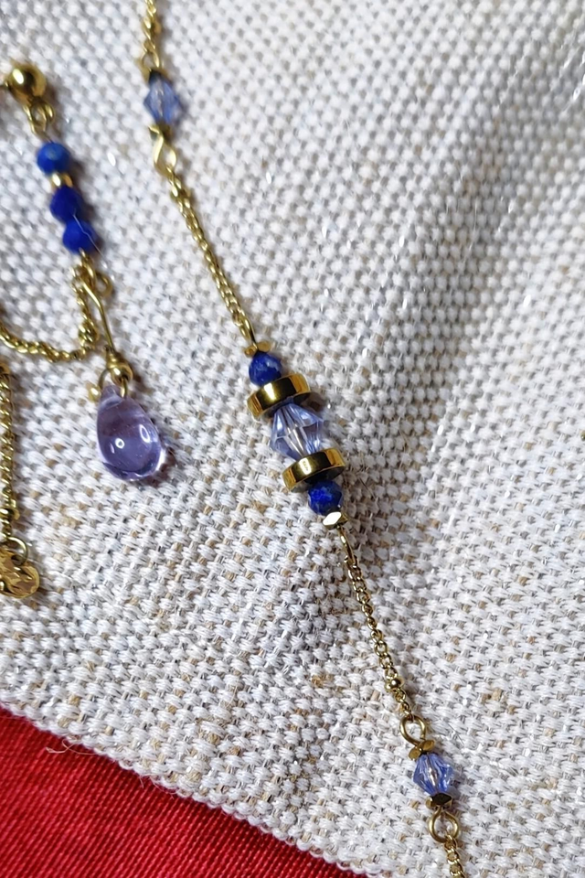 Matières: perles en verre, hématite, plastique et lapis lazuli. Acier inoxydable