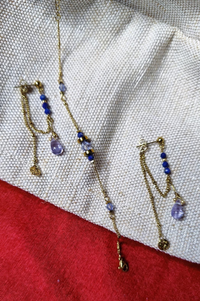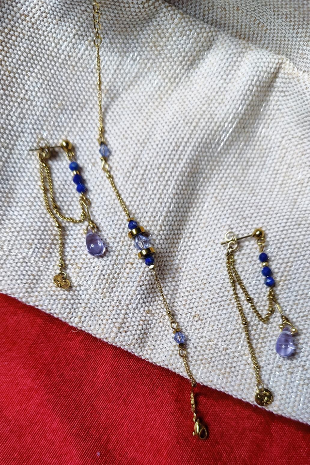 Coffret bijoux - Boucles & Bracelet assortis - Lapis Lazuli & Doré